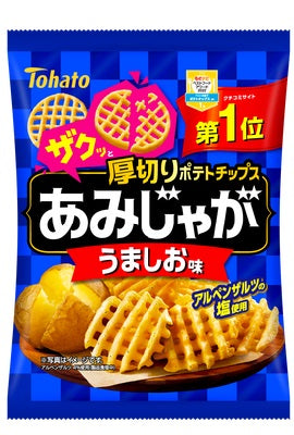 Amijaga Umashio Flavour is a crispy potato snack cut in a mesh pattern, with a delicious salty flavour. The unique shape and light texture of this product can be enjoyed for its simple, never-ending taste.