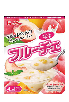 Flûche <Mixed Speech Flavour> is an easy-to-prepare dessert base that allows you to create a fruity peach-flavoured dessert simply by mixing it with milk. The fresh multiple peach flavours can be enjoyed by children and adults alike.