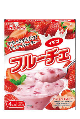 A liquid dessert base that can be easily prepared by children by simply mixing it with milk. You can enjoy the fruity taste with pulp and juice and a pruney texture of the dessert. Fruity taste with strawberry pulp and juice.
