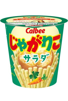 Calbee's Jagarico Salad Flavour is a stick-type snack with a crunchy texture. Based on a potato base, it has a refreshing, lightly salty taste with the added flavour of cabbage, carrots and other vegetables.