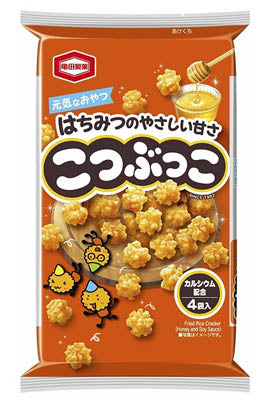 Kotsubukko from Kameda Seika are small, granular fried rice crackers with a light, crispy texture. They spread a savoury soy sauce flavour and are popular as an easy, bite-sized snack.