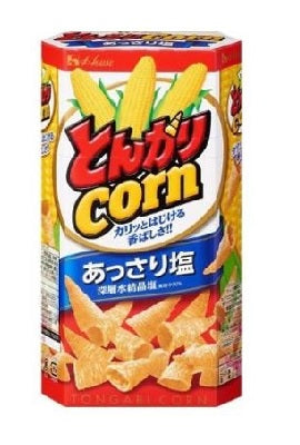 Tongari Corn Lightly Salted is a snack with a crunchy texture and just the right amount of saltiness. Made mainly from corn, it is light and pleasant to eat. It is popular for its unique shape, which can be enjoyed by putting it on your finger.